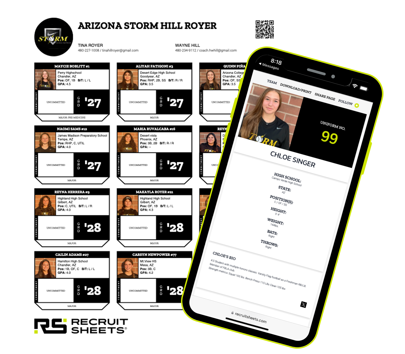 Your team gets a unique QR code that links directly to your full roster—formatted exactly how college coaches want to see them.