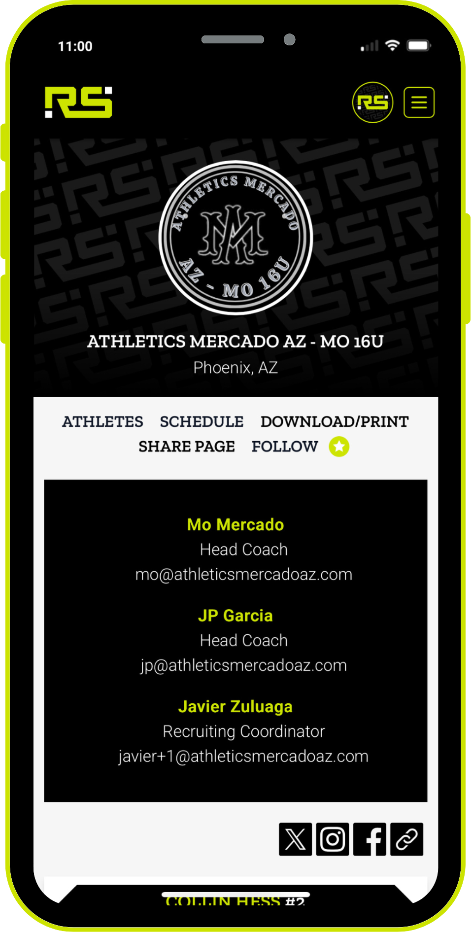 Coaches can ensure contact info is accurate and visible–so there’s never a missed connection. Make last-minute changes without stress–everything updates instantly College coaches scan then can follow your team and individual athletes—and you’ll get notified when they do. Simple, smart exposure keeping you in the loop.